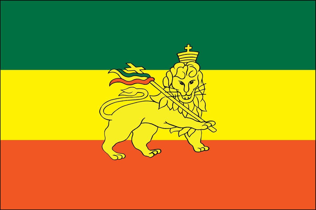 Ethiopia Flag, with Lion. 100% Nylon. Made in USA to Official Design Specifications. Proven to last the longest and be the brightest. Durable 200-denier nylon fabric flies in the lightest breeze and blocks damaging UV rays. Finished with sturdy canvas heading and strong brass grommets.