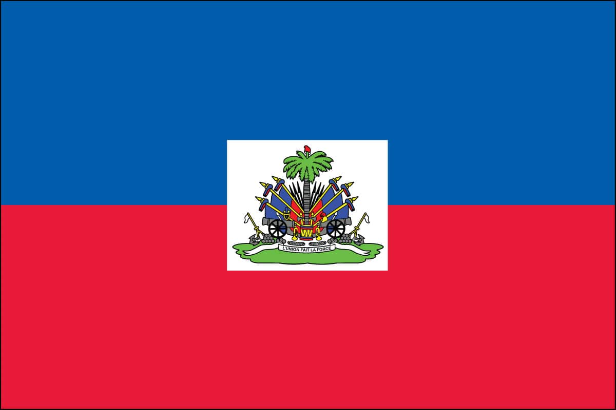 Haiti Flag w/Seal. 100% Nylon. Made in USA to Official Design Specifications. Proven to last the longest and be the brightest. Durable 200-denier nylon fabric flies in the lightest breeze and blocks damaging UV rays. Finished with sturdy canvas heading and strong brass grommets.