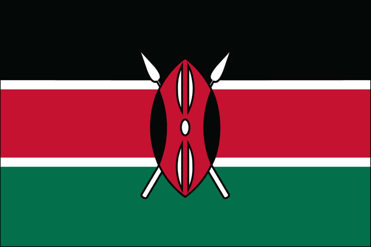 Kenya Flag. 100% Nylon. Made in USA to Official Design Specifications. Proven to last the longest and be the brightest. Durable 200-denier nylon fabric flies in the lightest breeze and blocks damaging UV rays. Finished with sturdy canvas heading and strong brass grommets.