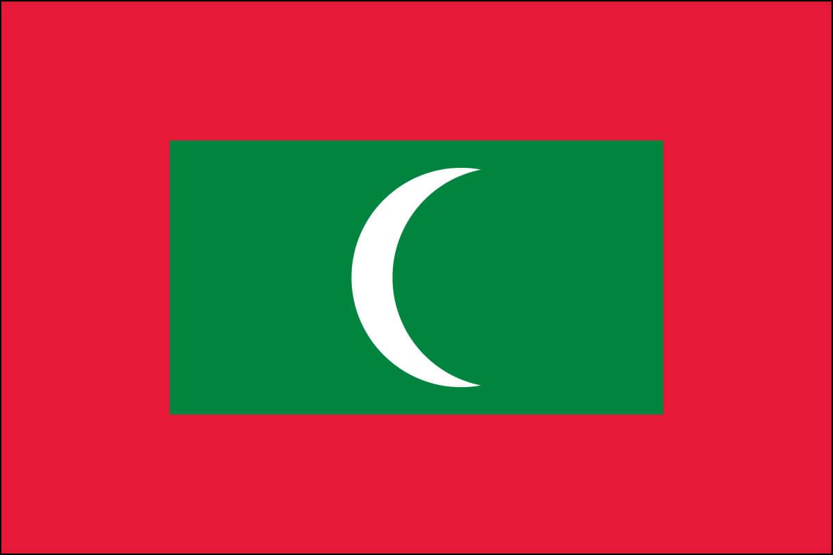 Maldives Flag. 100% Nylon. Made in USA to Official Design Specifications. Proven to last the longest and be the brightest. Durable 200-denier nylon fabric flies in the lightest breeze and blocks damaging UV rays. Finished with sturdy canvas heading and strong brass grommets.