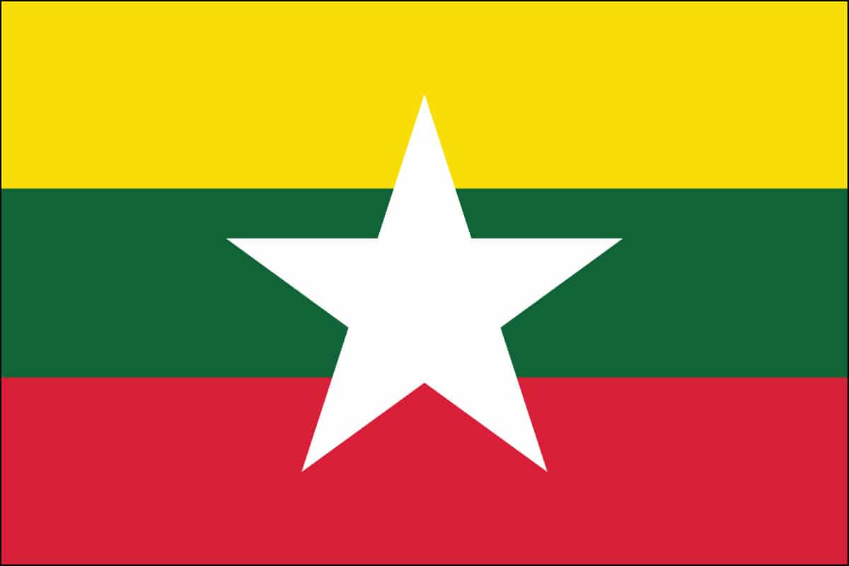 MYANMAR – The flag has three horizontal bands of yellow, green, and red with a large white five-pointed star in the middle. The flag of Myanmar is bright and colorful and features a unique design. However, like most other flags, there is symbolism behind the design of this flag. The most significant meaning behind the flag of Myanmar is the three colors used in the design. The colors of the Myanmar flag represent solidarity, tranquility and peace, and decisiveness and courage.