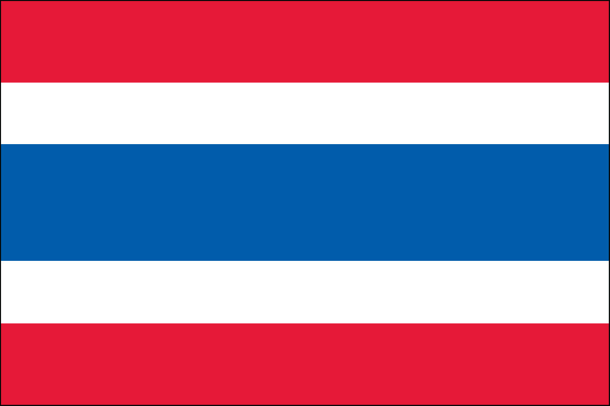 Thailand Flag. 100% Nylon. Made in USA to Official Design Specifications. Proven to last the longest and be the brightest. Durable 200-denier nylon fabric flies in the lightest breeze and blocks damaging UV rays. Finished with sturdy canvas heading and strong brass grommets.
